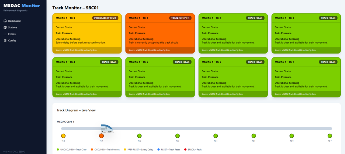 The MSDAC platform strictly focuses on monitoring and diagnostics. It does not generate signaling logic or control train movement, ensuring safety and compliance with railway standards.